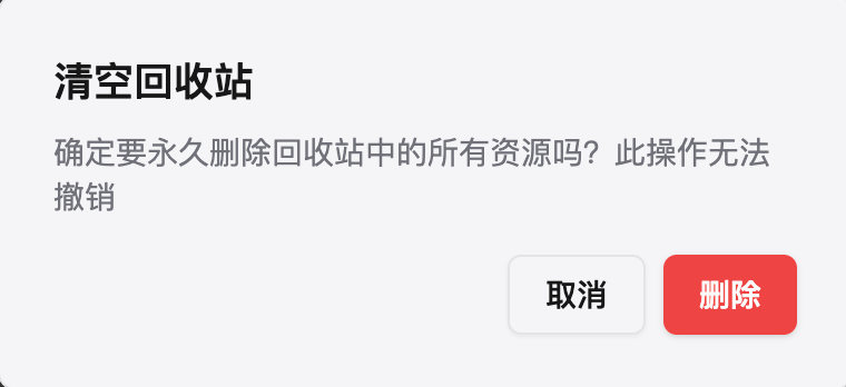 Click Empty in the bottom right corner, and after confirmation, all resources in the trash will be permanently deleted.